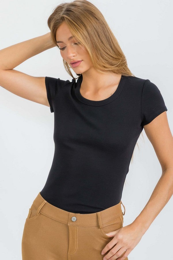 This Cotton Short Sleeve T-Shirt offers a sleek, body-hugging silhouette that flatters your shape while providing all-day comfort. Featuring a classic round neckline for comfort it ensures a clean, polished look.